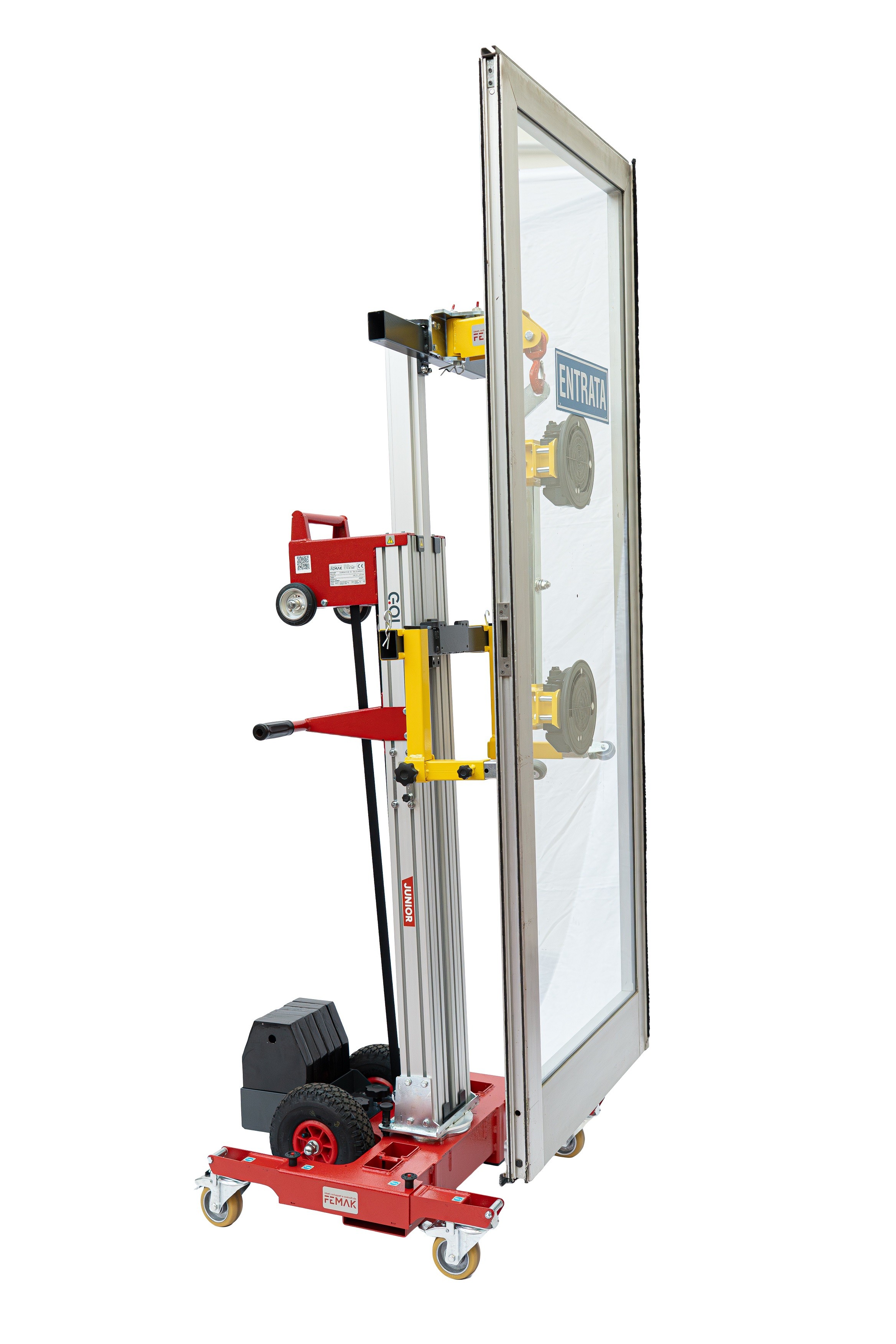 Sa conception astucieuse, vous permets, en installant les contre poids constitués de bidon à remplir d’eau, la manutention de vitrages verticaux, ou vitrages de véranda (avec option kit véranda).