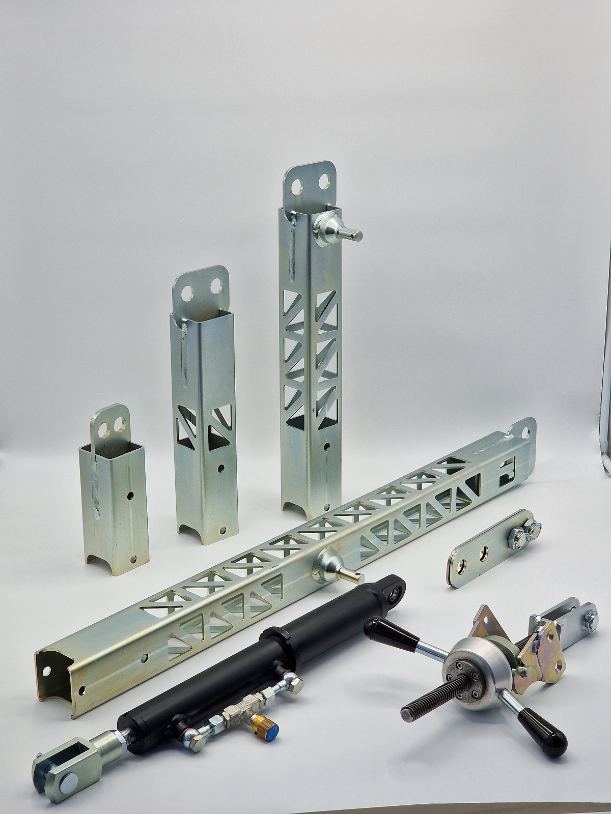 - Structure portante verticale en acier renforcée avec anneau de suspension (abaissé au centre du palonnier pour une hauteur perdue de seulement 330 mm spécialement conçue pour les pose sous "casquette", basculement impossible avec cette suspension, CF option "suspension courte A" ou autres)
